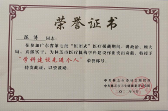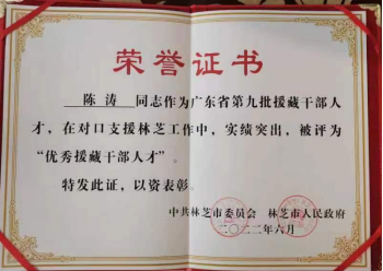 2021年8月陈涛作为深圳市第九批援藏干部人才进藏,在林芝市人民医院开展了为期一年的医疗支援。在林芝市人民医院支援期间,陈涛积极参与感染科科室管理建设,提高科室管理水平;严格落实医疗核心制度,加强科室医疗质量与安全管理工作;定期开展科室学术讲课,每月进行2次学术讲课,以提高当地医生临床理论水平;每周定期开展结核病专科门诊,为当地藏族患者提供门诊诊疗服务;开展新技术,协助科主任积极改造支气管镜室硬件及软件设施;制定帮带任务,积极对当地藏族医生进行“传帮带”工作,让“输血”变为“造血”,以加强本地人才培养,教出一支带不走的结核病防治队伍;承担全院肺部感染性疾病的会诊工作及全院的MDT,提出专科诊疗意见;提升临床医疗水平,加强林芝市人民医院感染科(结核病)在西藏自治区的学术影响力;加强护理安全管理,提供优质护理与护理质量持续改进,实现感染科医护一体化查房,更好地进行了医护沟通,并更好解决患者的实际问题,提高患者的满意度,杜绝和防范医疗纠纷及事故;加强院内多学科合作,参加医院培训授课工作,以提高对结核病的认识;指导全科开展临床科研工作及医学论文的撰写,提高科室科研能力,以第一主持人协同科室人员申报2021年西藏自治区自然科学基金项目,并已立项等,积极出色地完成了对口支援工作。