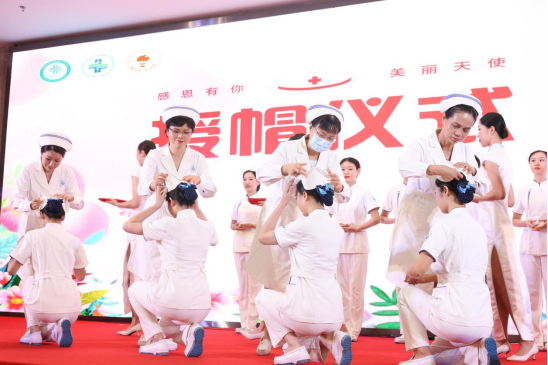 伴随着柔和的音乐,庄严而神圣的授帽仪式开始了,丁小容理事长、操静主任等护理前辈为36名护士代表授帽。由“南粤传染病好护士”罗蓝护士长领誓,36名护士代表面向南丁格尔像庄严宣誓,她们将恪守“燃烧自己,照亮他人”的誓言,为我院护理事业贡献自己的力量。