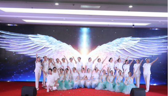 授帽仪式结束后,以“关爱护士队伍,护佑人民健康”为主题的文艺演出在绚丽多姿的《敦煌飞梦》舞蹈中拉开帷幕。情景剧《跨越距离的奇迹》、《天使之翼》 ,乐队表演《我相信》 ,诗朗诵《我们的医院》 ,旗袍秀《水墨兰亭》 ,合唱《一起向未来》 ,舞蹈《绽放》……精彩节目轮番上演,表演朴实却不失专业、舞姿轻盈且尽显柔美,护理部的天使们才情尽显,展现了燕尾帽下的另一面,传递着我院护理团队以如磐初心凝聚的磅礴力量,彰显了我们守护人民群众生命健康的决心,赢得了台下观众阵阵掌声与喝彩。