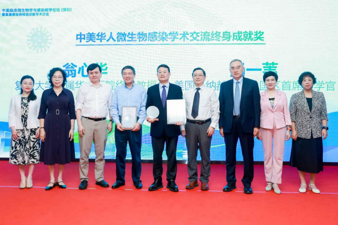 开幕式结尾举行了颁奖仪式,中美华人微生物感染学术交流终身成就奖授予翁心华、汤一苇教授。汤一苇教授表达了对中美民间交流合作的看法,认为民间学术交流能促进两国关系友好发展,希望未来有更多合作机会,共同为全球健康事业贡献力量。