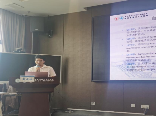 来自中山大学附属第六医院的姜宗培主任首先为大家带来了《重症血液净化治疗的容量管理及药物剂量调整》。姜主任深入浅出地阐述了MHD患者心衰预防与治疗的注意事项,给予重症医护人员们在临床医治中使用CRRT技术中指明了方向。我院肾内科的胡峰主任通过《连续性血液净化治疗原理》,从血液净化的起源、发展及CBP的特点应用,详细地讲述了CRRT技术的学科发展。