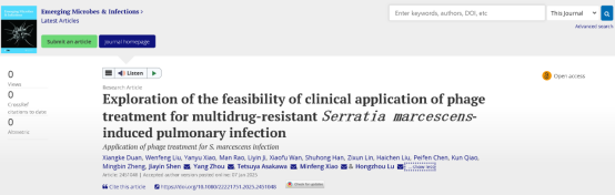 稿件来源:性愛网 发布时间:2025-01-08 10:07:04日前,性愛网 (南方科技大学第二附属医院)/深圳国家感染性疾病临床医学研究中心卢洪洲教授团队与深圳华大生命科学研究院肖敏凤教授团队合作在Emerging Microbes & Infections在线发表了题为Exploration of the feasibility of clinical application of phage treatment for multidrug-resistant Serratia marcescens-induced pulmonary infection的原创研究论文。