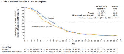 此次2-3期双盲、随机、安慰剂对照试验,入组患者为出现症状3天以内的轻度至中度新冠感染患者,随机(1:1)接受750 mg先诺特韦联合100 mg利托那韦治疗或安慰剂治疗,日二次,共5天。主要疗效终点是至症状持续消退的时间,即连续两天没有出现11项COVID-19相关症状。在这项发表于NEJM的先诺特韦和利托那韦联合治疗的2-3期研究中,我院共入组346例新冠感染患者,是所有参研中心入组例数最多的单位。该研究结果表明早期服用先诺特韦联合利托那韦可缩短COVID-19成人患者至症状消退的时间,且无明显安全问题。