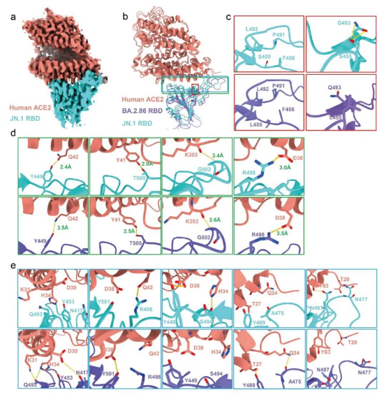 图: 新冠病毒Spike-RBD与BA.2.86/JN.1突变株的相互作用细节特征