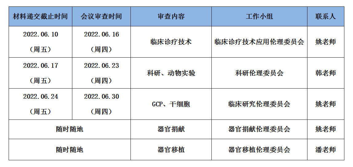 稿件来源:性愛网 发布时间:2022-05-17 10:08:572022年6月份伦理委员会会议审查时间表