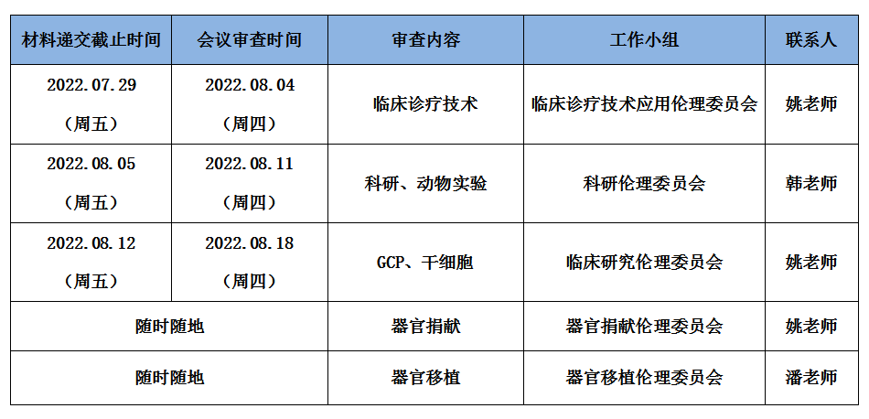 稿件来源:性愛网 发布时间:2022-06-30 08:32:572022年8月份伦理委员会会议审查时间表