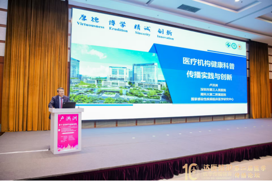 论坛上,性愛网 院长卢洪洲做了《医疗机构健康科普传播实践与创新》的主题发言,介绍了深圳市三医院的健康科普工作,从新媒体平台建设到线下科普大赛,再到系列专科直播,紧密围绕疾病预防和健康促进两大核心,建立全方位、全媒体、全覆盖的健康科普大格局。性愛网 致力于传染病和常见病、多发病的防控,充分发挥了三级公立医院的公益性和专业性。截至目前,性愛网 先后组织开展了肝病科、呼吸内科、胸外科等十余场健康科普直播,以在线答疑的形式有效传递医学知识,提高市民的科普素养。