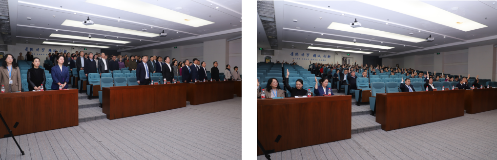 会议在庄严的国歌中拉开帷幕。会上,代表们依次听取了院庆筹备工作进展、院志、院史馆、三院IP形象方案,完善院徽、院歌、口述史工作等情况汇报。随后,职工代表就院徽、院歌、院志、院史馆、口述史、三院IP形象方案、院庆筹备工作等议题进行表决。